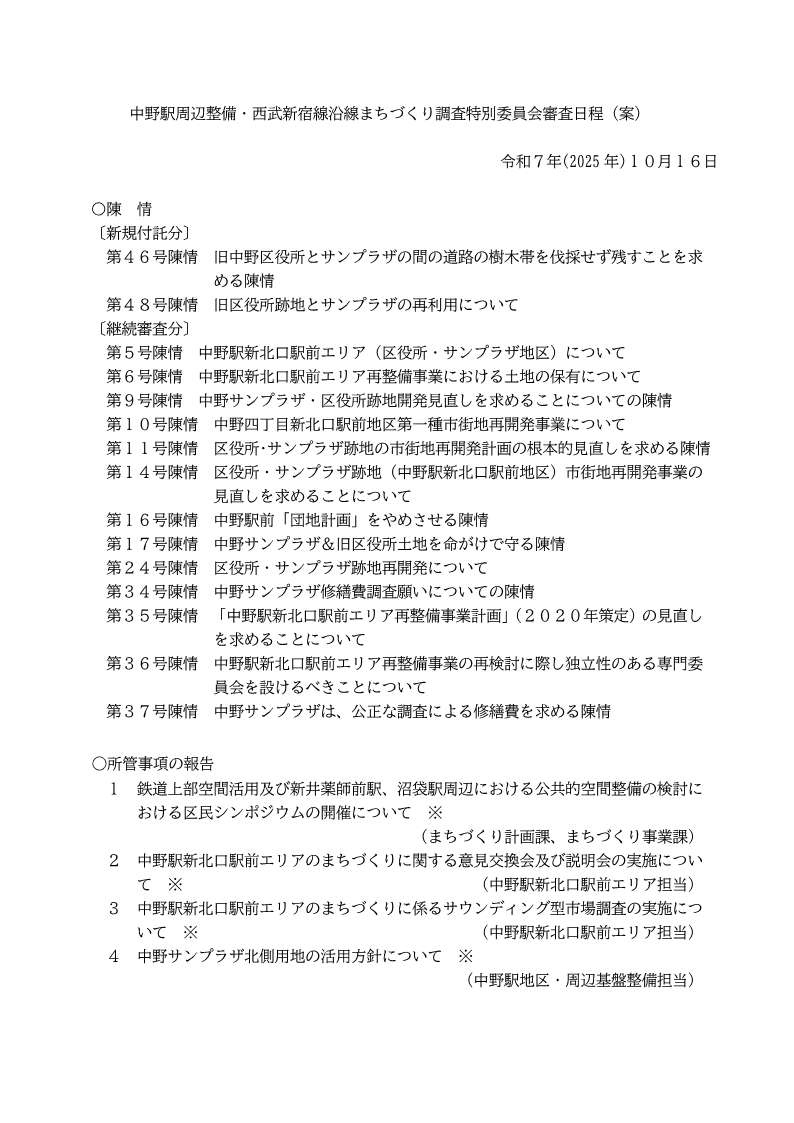10/16に開会予定の特別委員会(駅周・沿線特)の審査日程案をお知らせします。内容は変更の可能性があります。