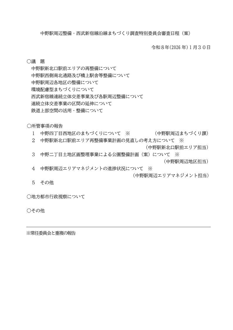 1/30に開会予定の特別委員会(駅周・沿線特)の審査日程案をお知らせします。内容は変更の可能性があります。